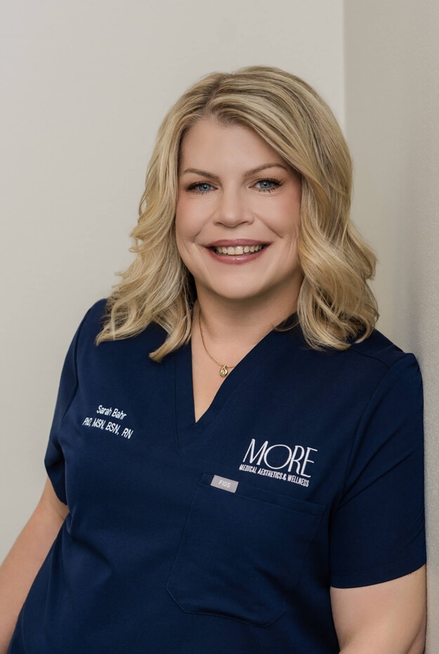 At More Medical Aesthetics & Wellness, Sarah serves as the Front Desk Operations Coordinator, where she combines her extensive clinical background and organizational expertise to support the seamless daily operations of the practice. She oversees scheduling, patient communication, and administrative processes, ensuring that every client receives the highest level of service and attention from their first point of contact through the completion of their visit.